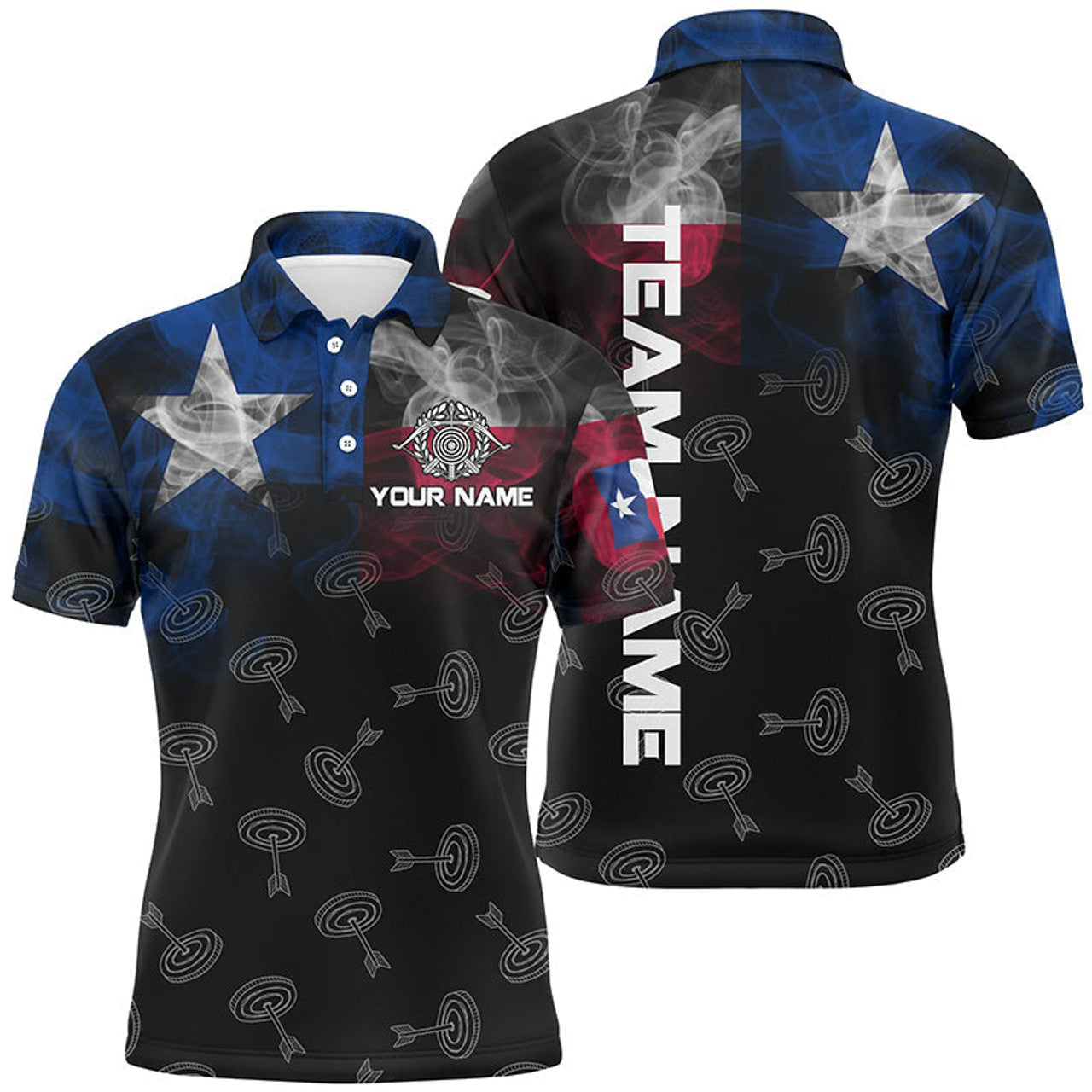 Personalized Vintage Smoke Texas Flag Archery Polo Shirts For Men, Archery Targets Pattern Jerseys