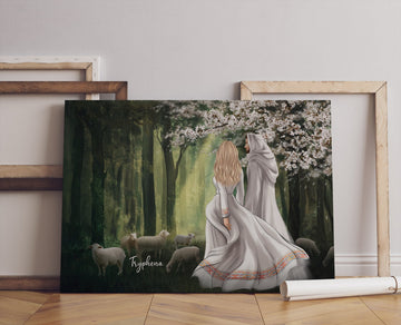 Personalized Woman First Day In Heaven Walking With Jesus Among The Lambs Canvas Prints