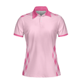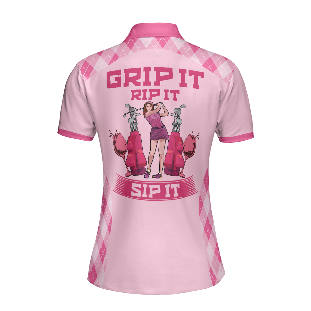 Pink Argyle Pattern Women Polo Shirt, Grip It Rip It Sip It Golf Short Sleeve Polo Shirt, Best Pink Golf Polo Shirt For Women