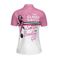 Pink Bowling Ball And Pin Pattern Women Polo Shirt, I'm A Classy Sassy Bowling Girl Bowling Short Sleeve Shirt For Ladies, Gift For Bowling Lovers