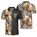 Play Darts And Drink Beer Short Sleeve Polo Shirt, Colorful Dart Board Pattern Polo Shirt, Best Beer Drinking Shirt For Men