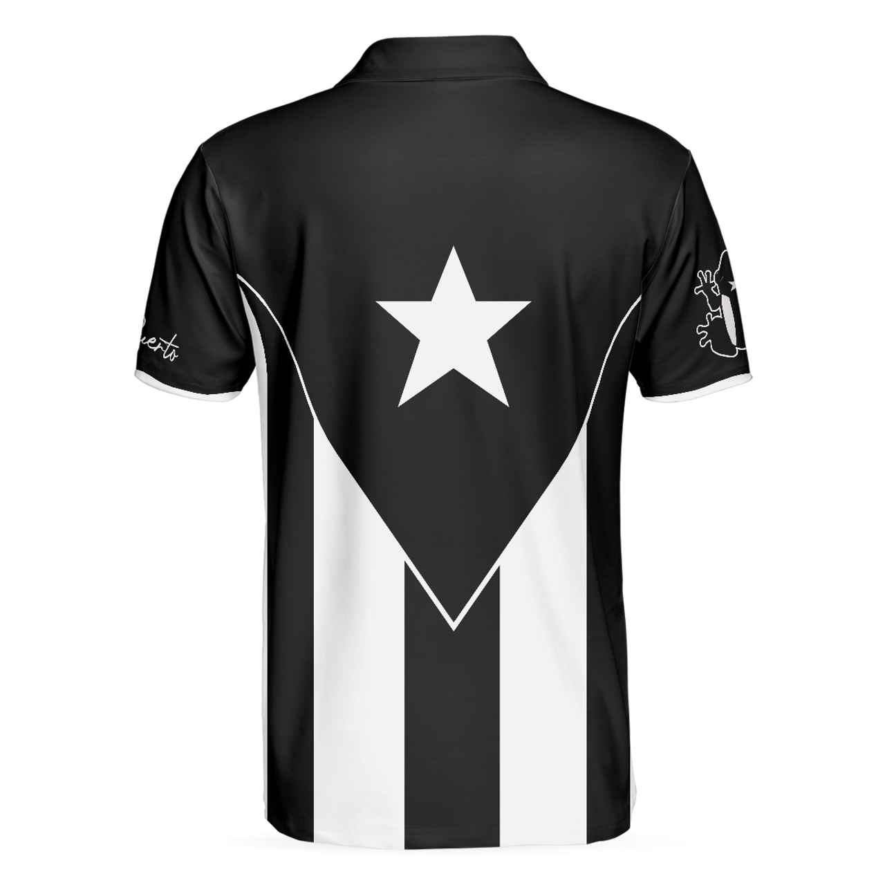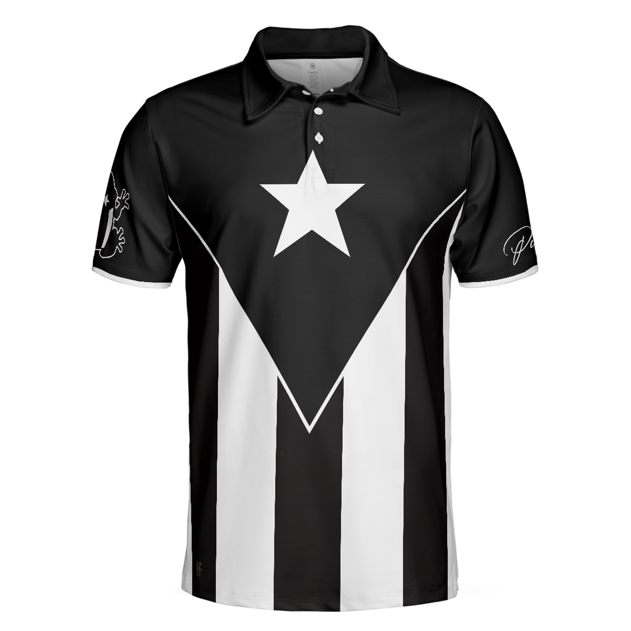 Puerto Rico Flag Black And White Polo Shirt, Puerto Rican Toad Coqui Shirt