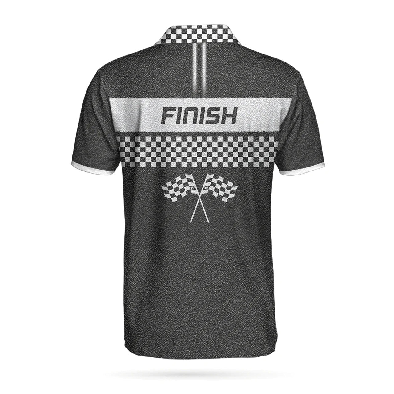 Racing Start And Finish Short Sleeve Polo Shirt, Black And White Checker Pattern Polo Shirt, Best Racing Shirt For Men