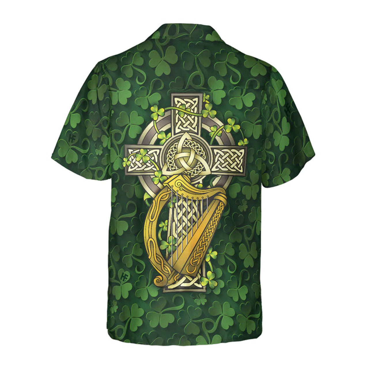 Saint Patrick's Day Shamrock Celtic Cross Harp Irish Hawaiian Shirt