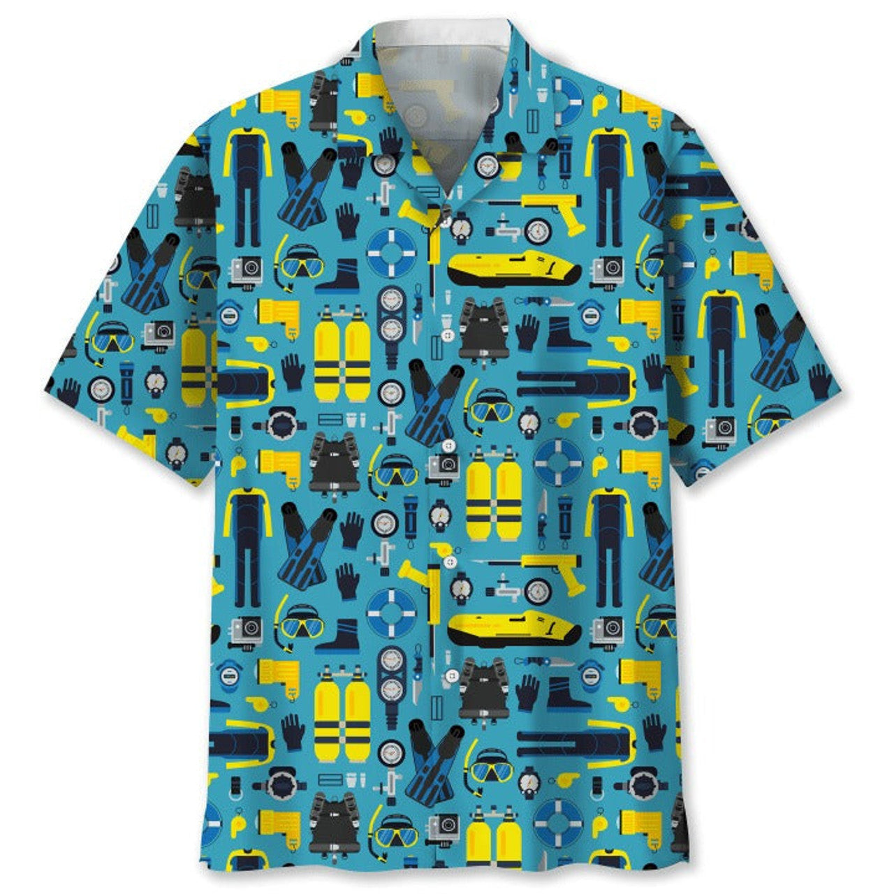 Scuba Diving Coconut Ocean Hawaiian Shirts For Travel Summer, Scuba Diving 3D All Over Printed Hawaii Shirt