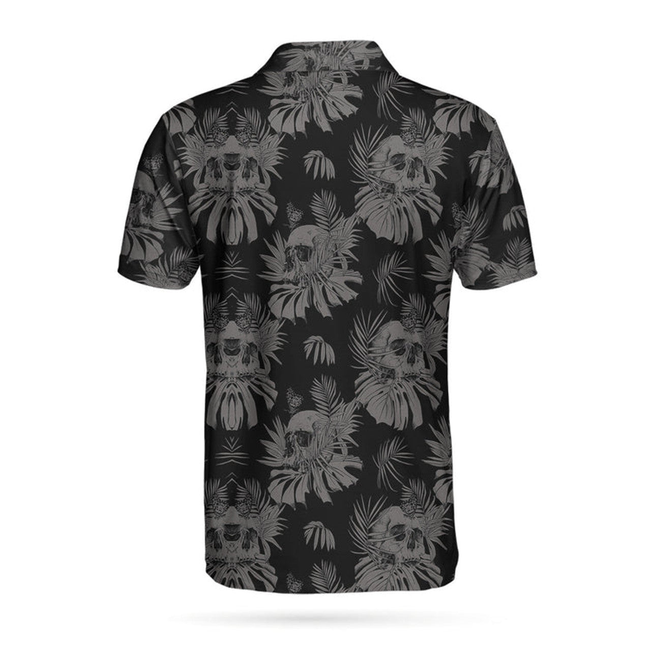 Seamless Skull Goth Polo Shirt, Black Floral Skull Pattern Polo Shirt, Best Gothic Shirt For Men