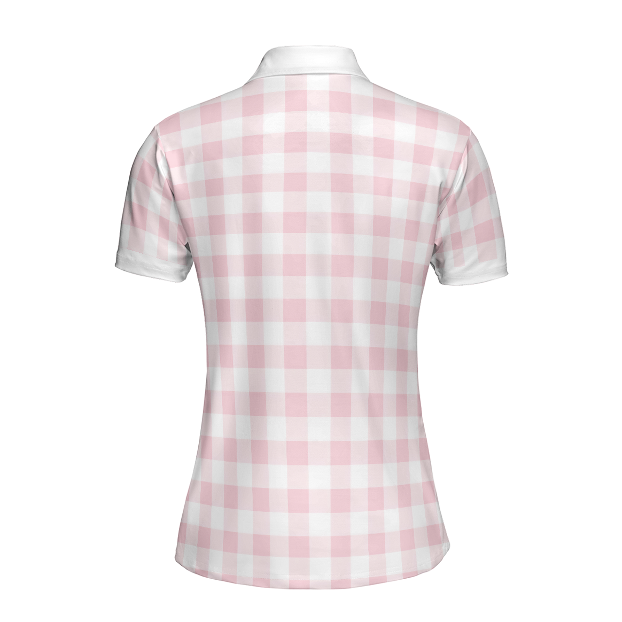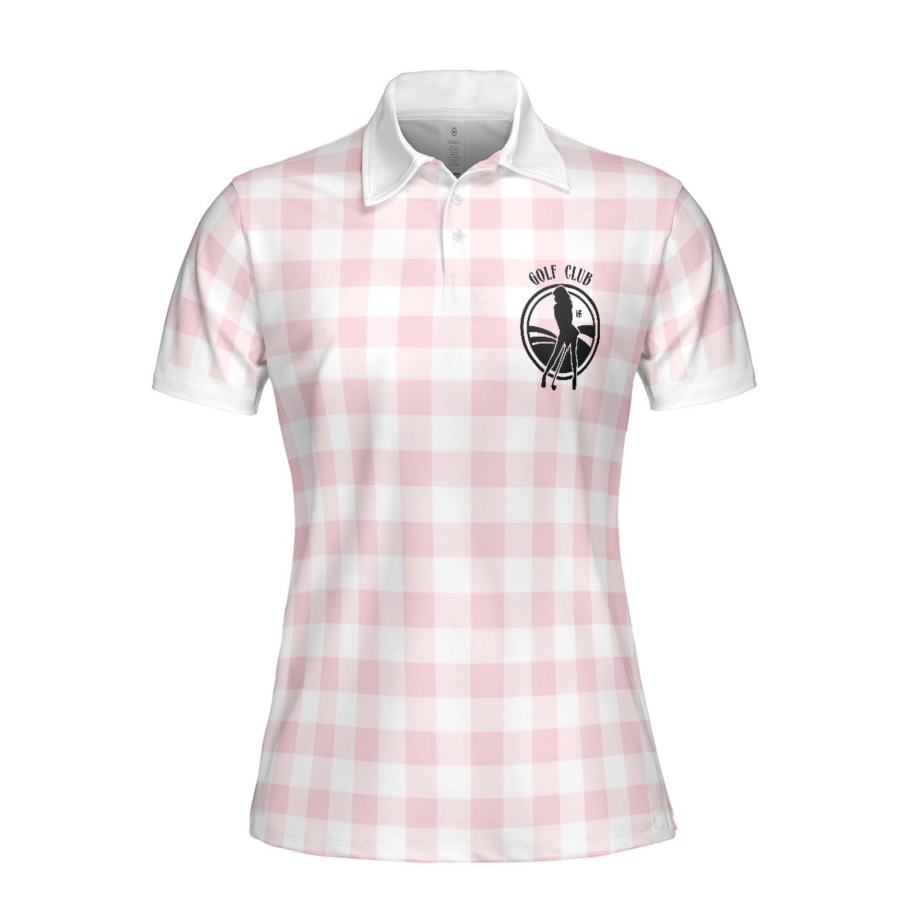 Sexy Golf Girl With A Golf Club Golf Short Sleeve Women Polo Shirt, White And Pink Golf Shirt For Ladies - Perfect Gift For Women, Female, Golfers