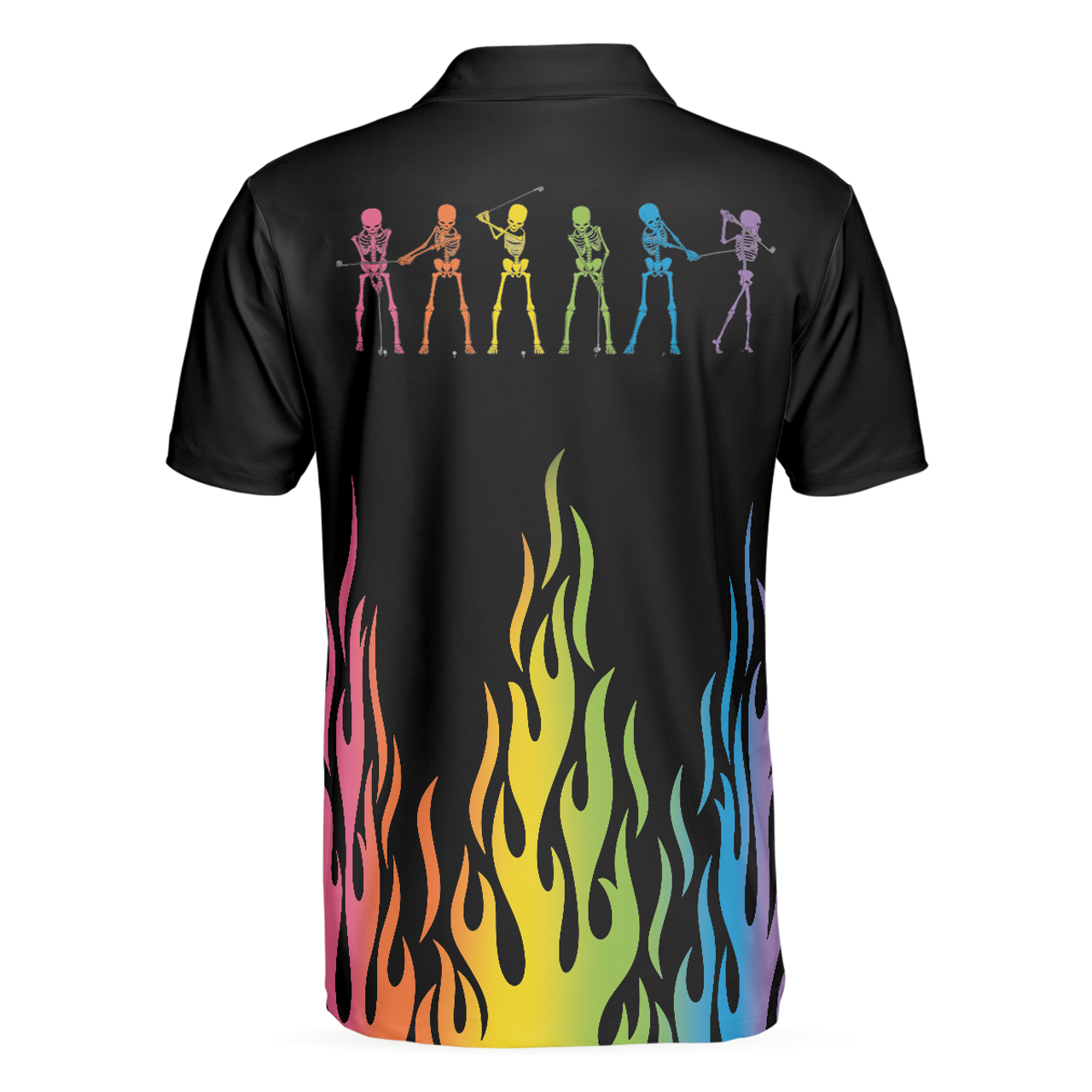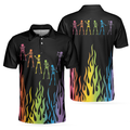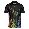 Skeleton Playing Golf Polo Shirt, Rainbow Pallette Fire Golfing Polo Shirt, Cool Golf Shirt For Men - Perfect Gift For Men, Golfers