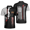 Skull American Flag With Golf Club Polo Shirt, Black And White American Flag Polo Shirt, Patriotic Golf Shirt For Men - Perfect Gift For Men, Golfers