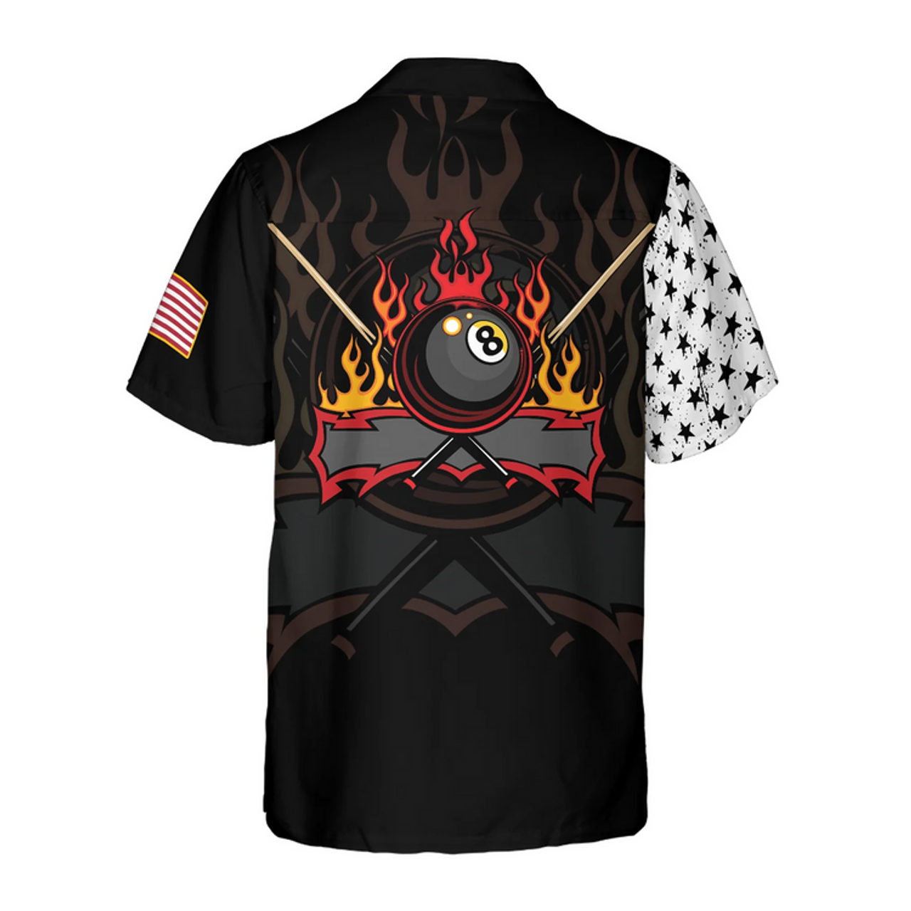 Skull Billiards Pool Hawaiian Shirt, Flag American Skull Billiard Shirt, Uniform Shirt Billiard Player