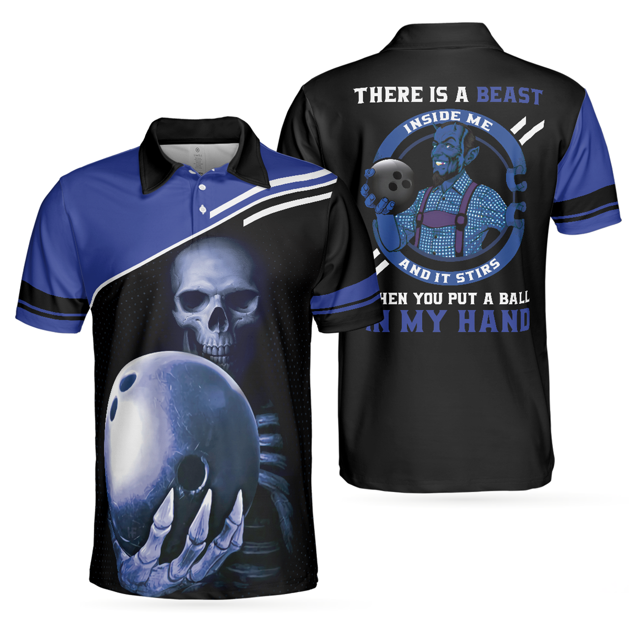 Skull Bowling Polo Shirt, Satanic Skeleton Bowler Bowling Shirt For Men - Perfect Gift For Men, Halloween, Bowling Players