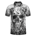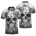 Skull Crow Black And White Short Sleeve Polo Shirt, Dark Forest Skull Crow Shirt For Men, Best Polo Shirt For Halloween - Perfect Gift For Men