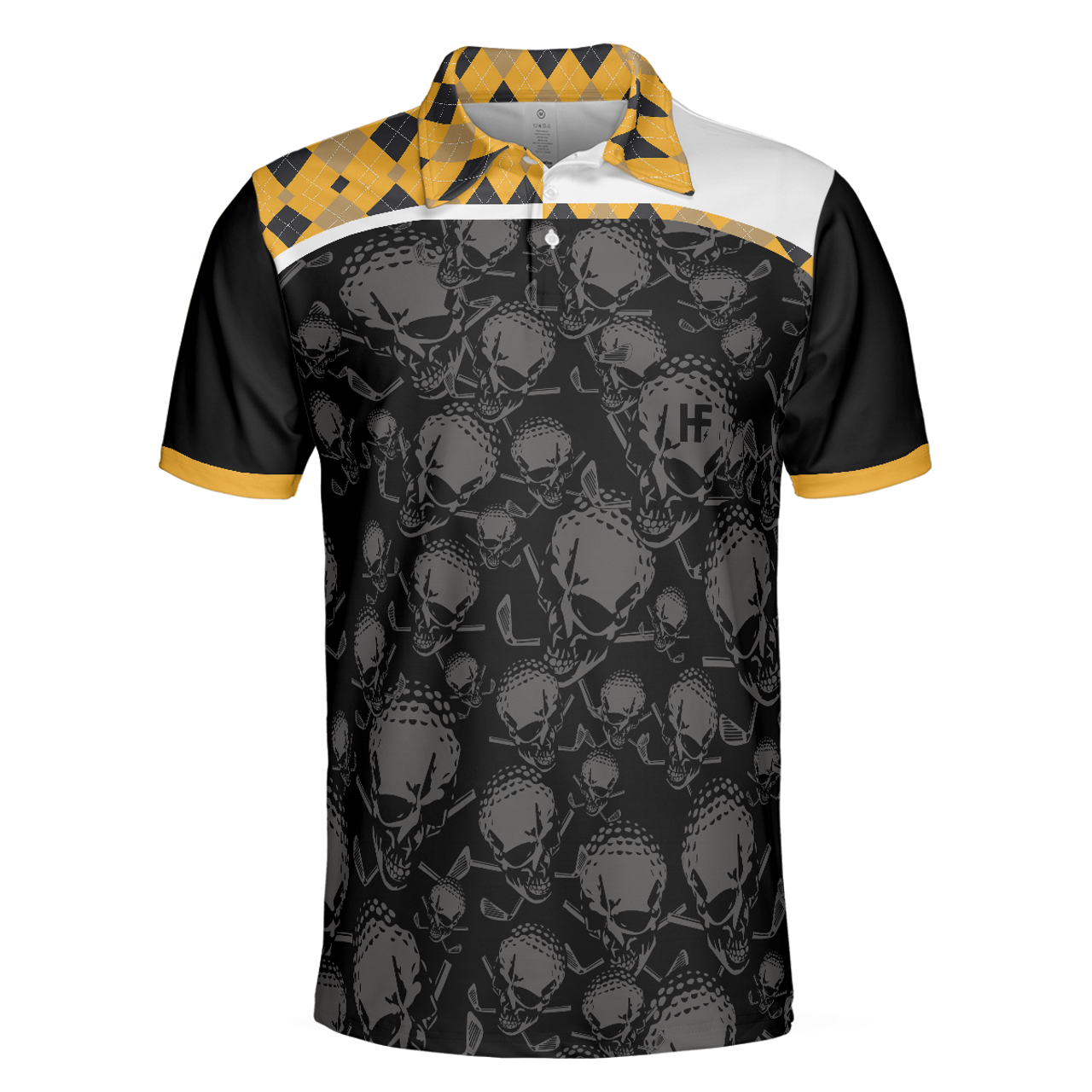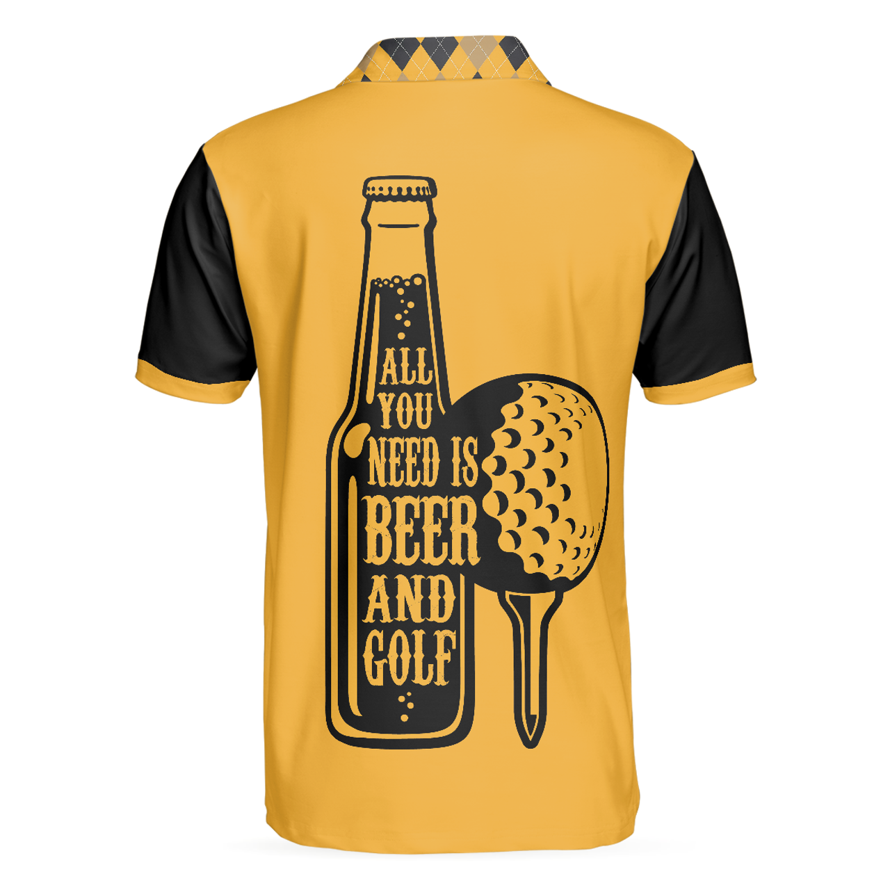 Skull Golf Men Polo Shirt, All You Need Is Beer & Golf Polo Shirt, Black And Yellow Argyle Pattern Golf Shirt For Men, Gift For Beer & Golf Lovers