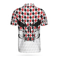 Skull Golf Red Black White Polo Shirt, Golf Texture Argyle Pattern Skull Polo Shirt, Best Golf Shirt For Men - Perfect Gift For Men, Golfers