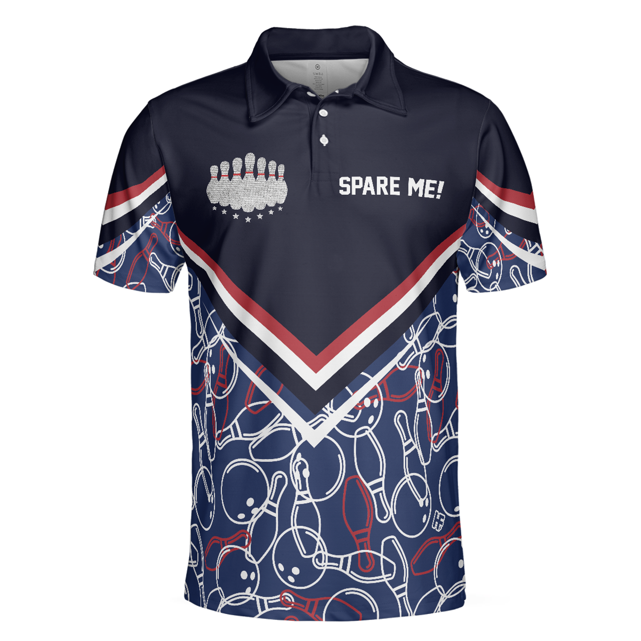 Spare Me Bowling Short Sleeve Polo Shirt, Bowling Ball And Pin Pattern Polo Shirt, Best Bowling Shirt For Men
