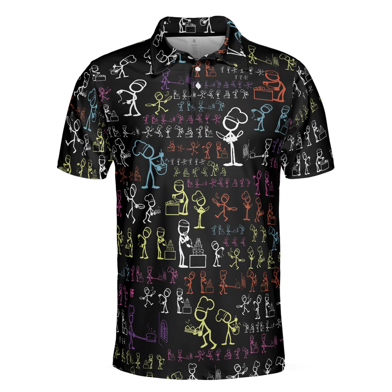 Stickfigures Chef Short Sleeve Polo Shirt, Doodling Cooking Polo Shirt, Best Chef Shirt For Men