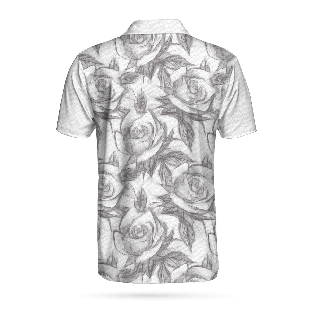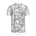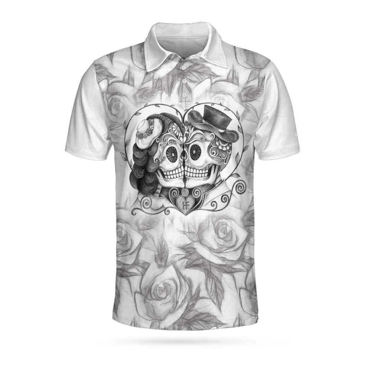Sugar Skull Drawing Love Polo Shirt, Skull Couple Rose Pattern Pencil Sketching Polo Shirt For Men