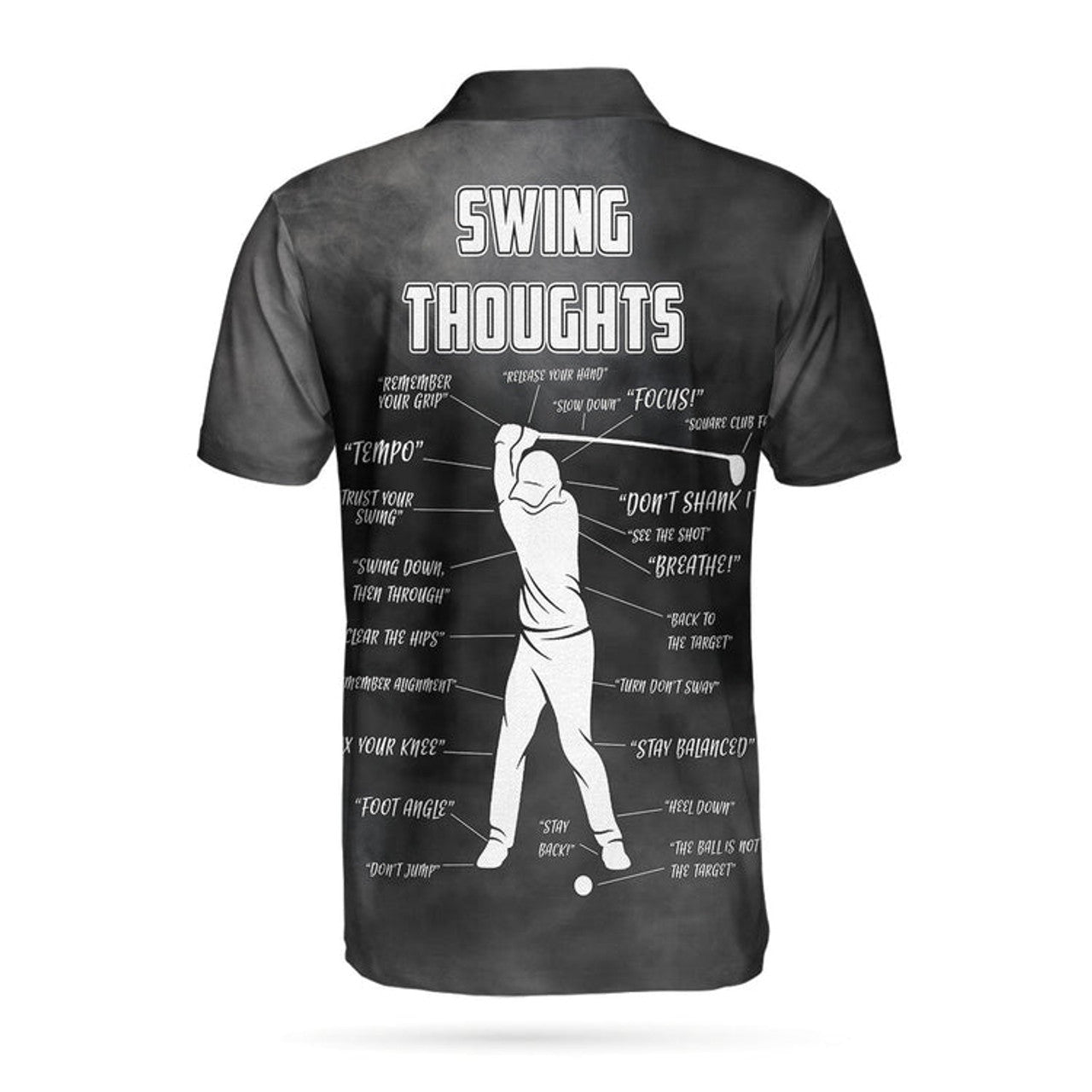 Swing Thoughts Short Sleeve Golf Polo Shirt, Black And Smoke Golfing Shirt, Funny Golf Shirt For Men