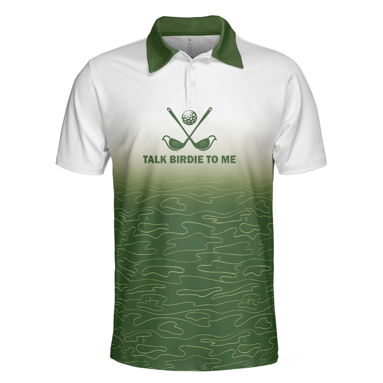 Talk Birdie To Me Golf Polo Shirt, White And Green Abstract Grass Pattern Golfing Polo Shirt, Best Golf Shirt For Men - Perfect Gift For Men, Golfers
