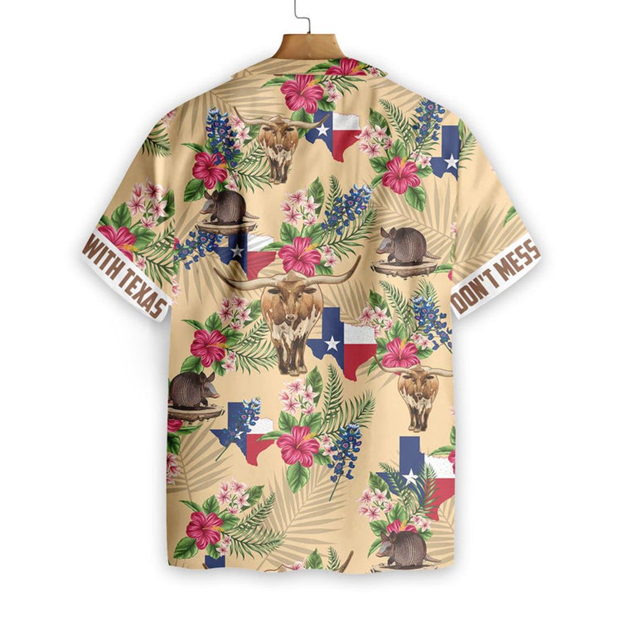 Texas Hawaiian Shirt Insignia Bluebonnet Cream Version