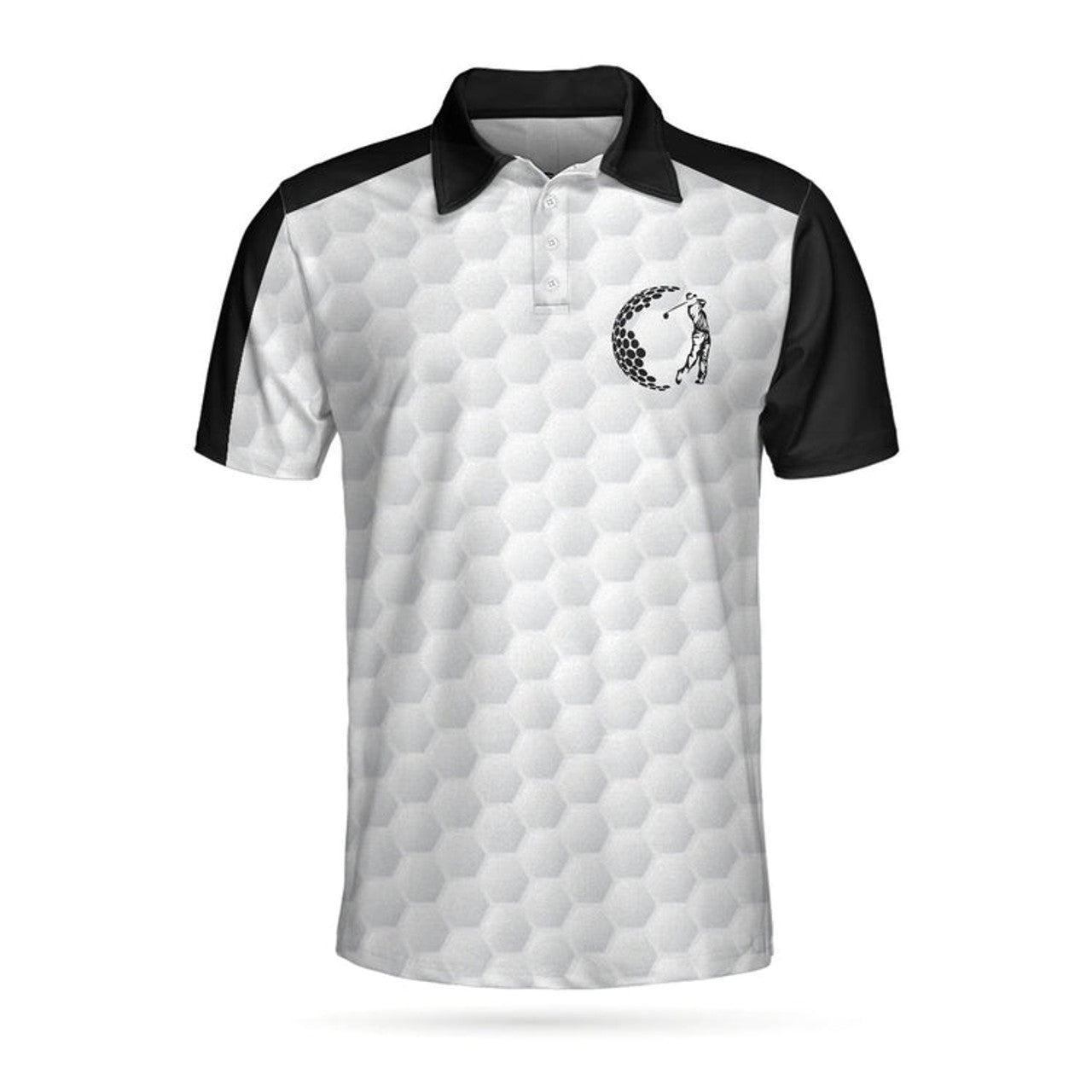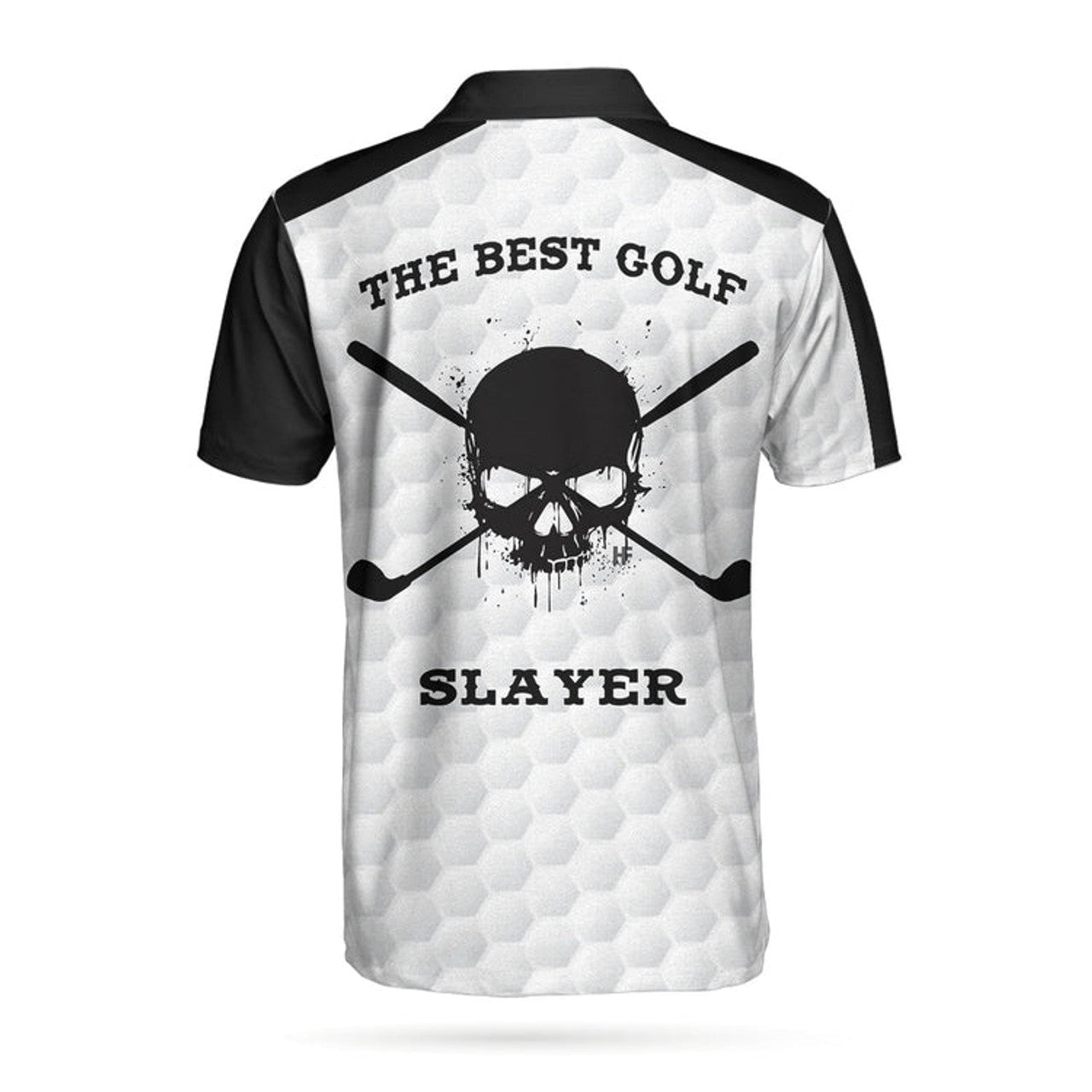 The Best Golf Slayer Wet Ink Skull Polo Shirt, Black Shoulder White Golf Pattern Polo Shirt, Best Golf Shirt For Men