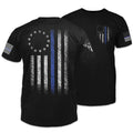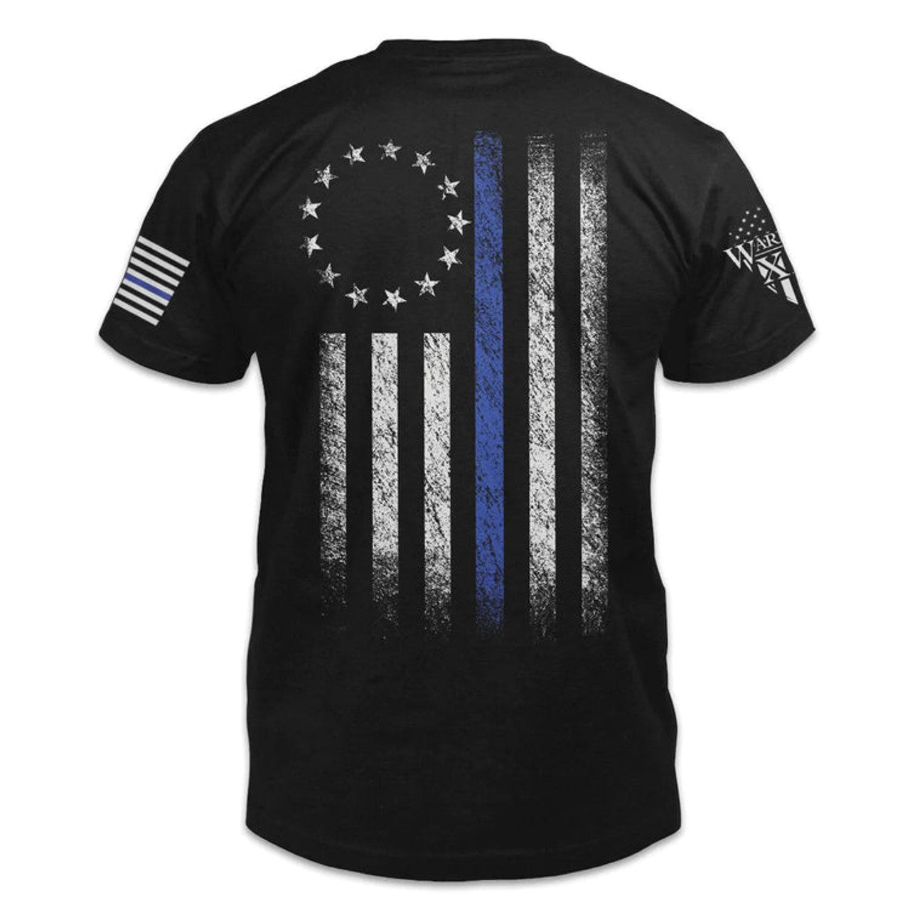 Thin Blue Line Betsy Ross Flag T-Shirt, Black T-Shirt Full Print With Usa Warrior Flag
