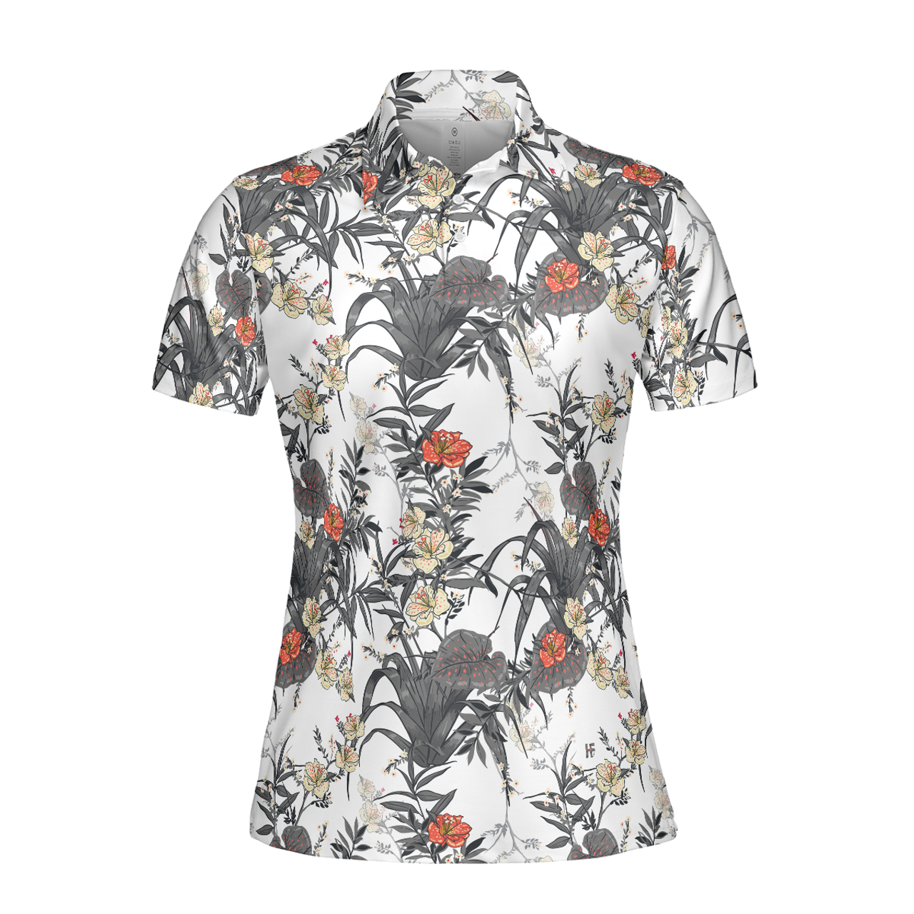 Tropical Flowers Shirt Short Sleeve Women Polo Shirt