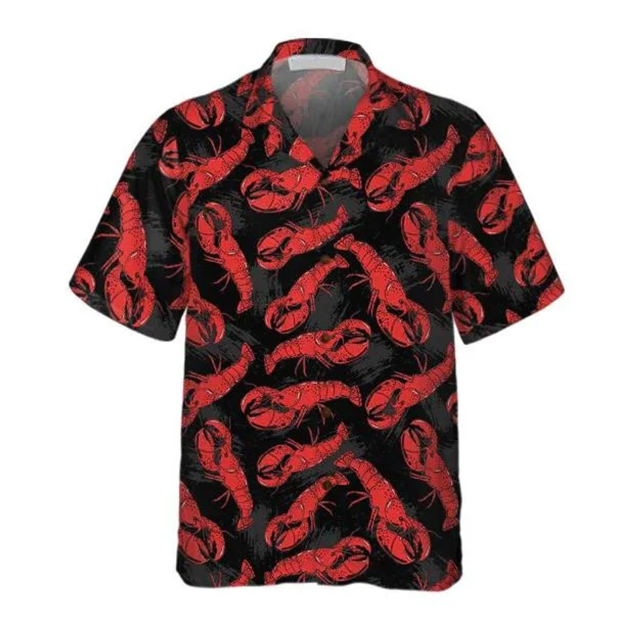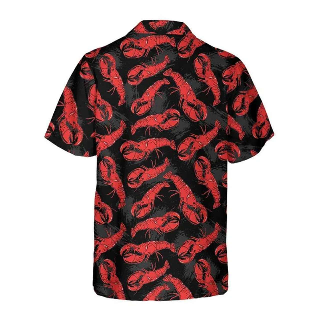 Tropical Lobster Hand Drawn Pattern Black Theme Hawaiian Shirt