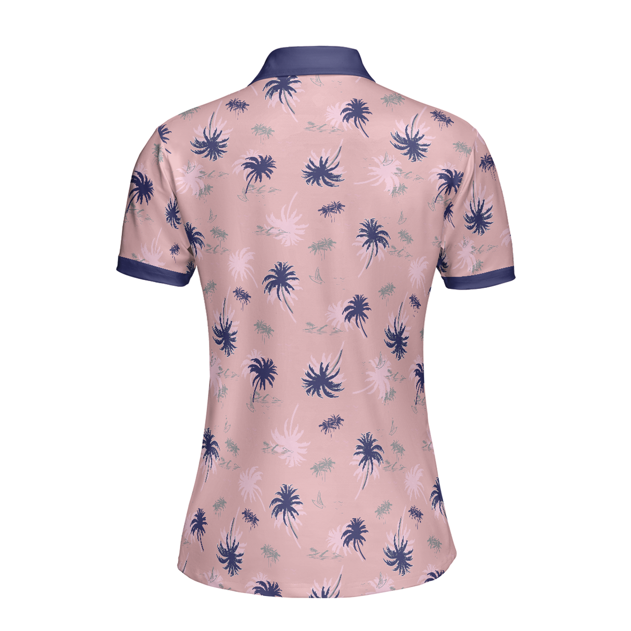 Tropical Palm Tree Pattern Shirt Short Sleeve Women Polo Shirt - Perfect Gift For Women
