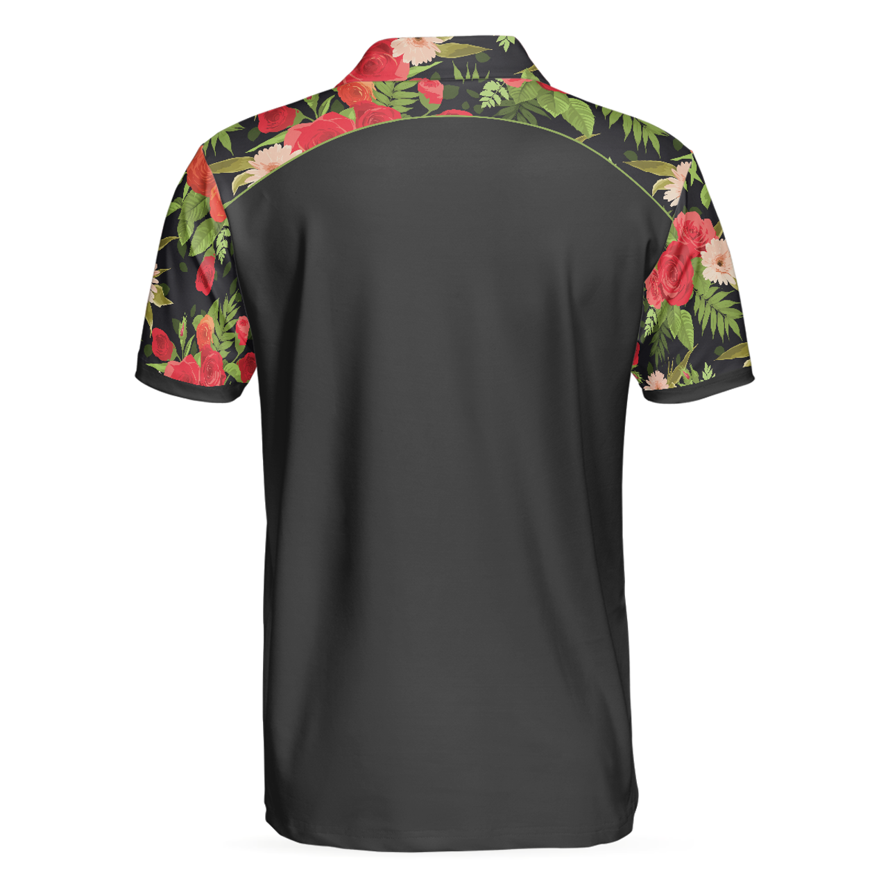 Tropical Roses Pattern Polo Shirt, Black Polo Shirt With Roses, Print Roses Pattern Shirt For Adults - Perfect Gift For Men
