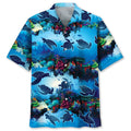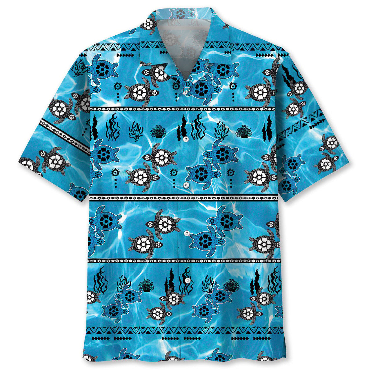 Turtle Shark Hawaiian Shirt, Ocean Turtle Background Pattern Shirt, Sea Turtle Summer Beach Hawaii Shirt