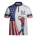 USA Flag Cigars And Golf Style Custom Name Golfing Mandarin Zipper Jersey 3D Polo