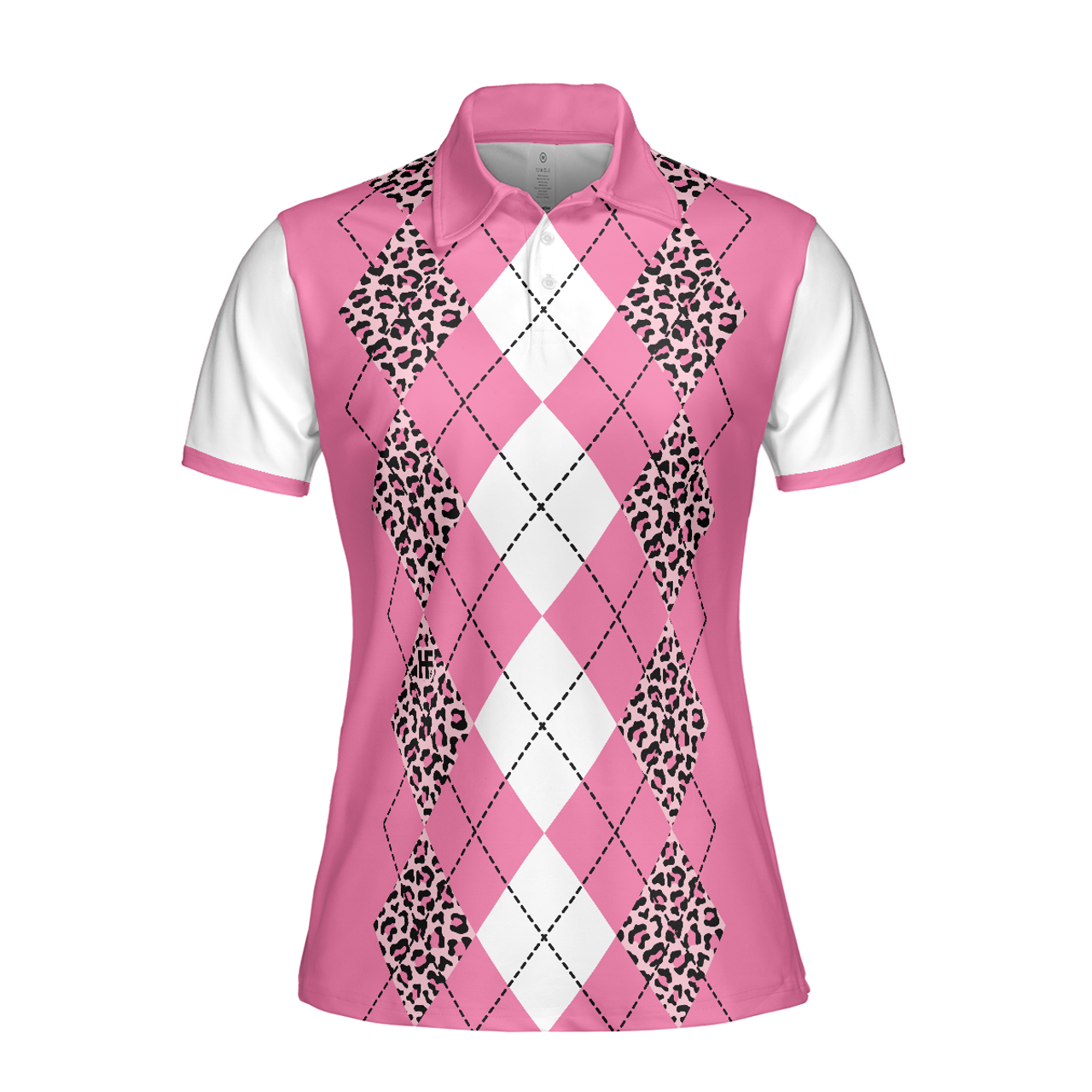 White And Pink Argyle Pattern Golf Women Polo Shirt, Are You Staring At My Putt Again Golf Short Sleeve Shirt For Ladies, Gift For Golfers