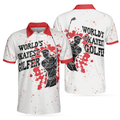 World's Okayest Golfer Golf Polo Shirt, Red Paint Splash Black Golfer Silhouette Polo Shirt, Best Golf Shirt - Perfect Gift For Men
