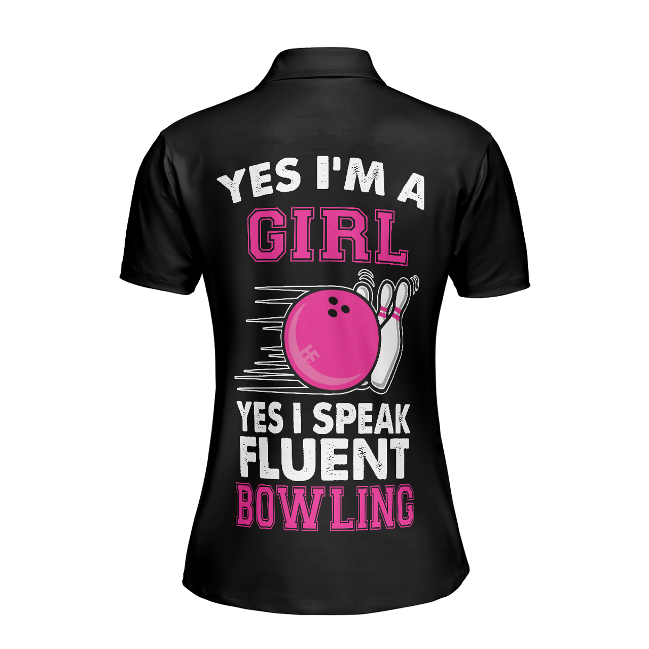 Yes I'm A Girl Yes I Speak Fluent Bowling Short Sleeve Women Polo Shirt, Skull Bowling Shirt With Sayings - Perfect Gift For Women