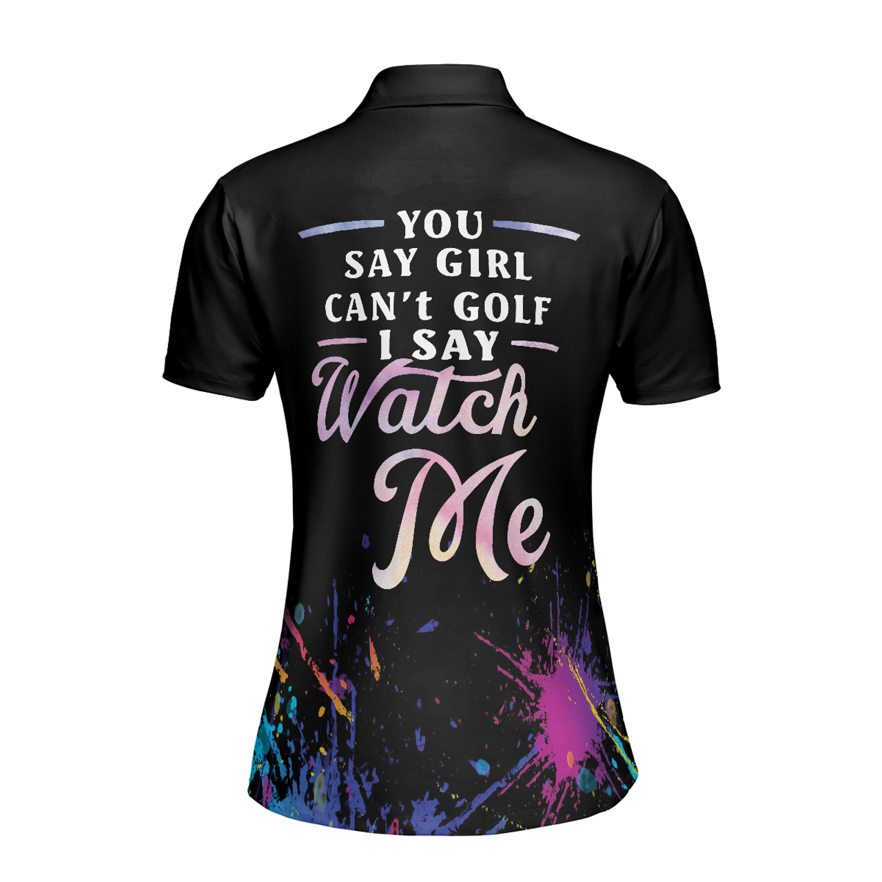 You Say Girl Can't Golf I Say Watch Me Short Sleeve Women Polo Shirt, Black Golfing Shirt For Girls - Perfect Gift For Women