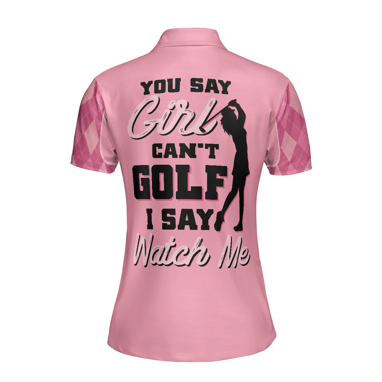 You Say Girl Can't Golf I Say Watch Me Short Sleeve Women Polo Shirt, Pink Golf Shirt With Sayings For Ladies - Perfect Gift For Women