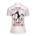 You Say Girls Can't Golf I Say Watch Me Short Sleeve Women Polo Shirt, Light Pink Argyle Pattern Shirt For Ladies - Perfect Gift For Women